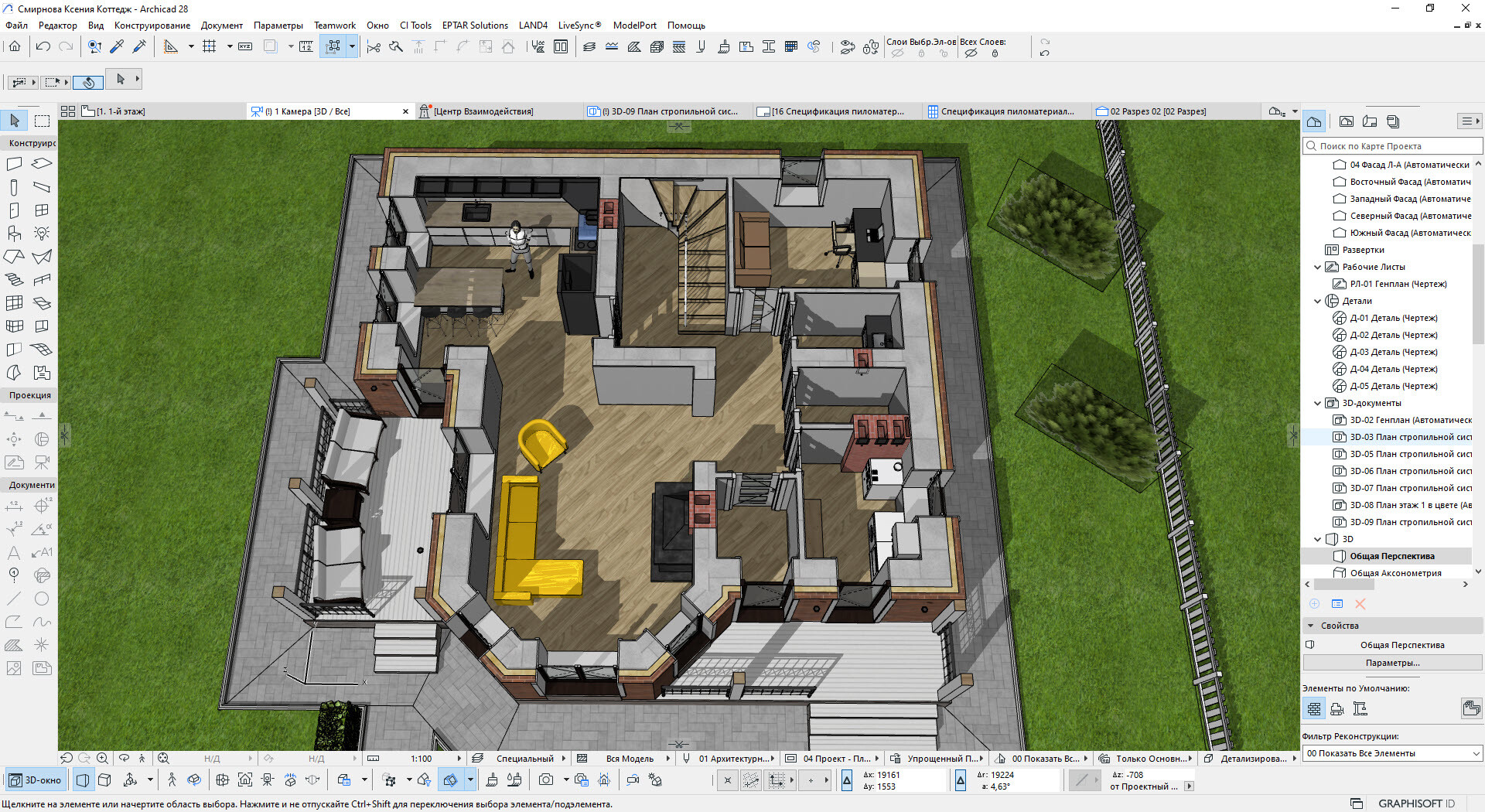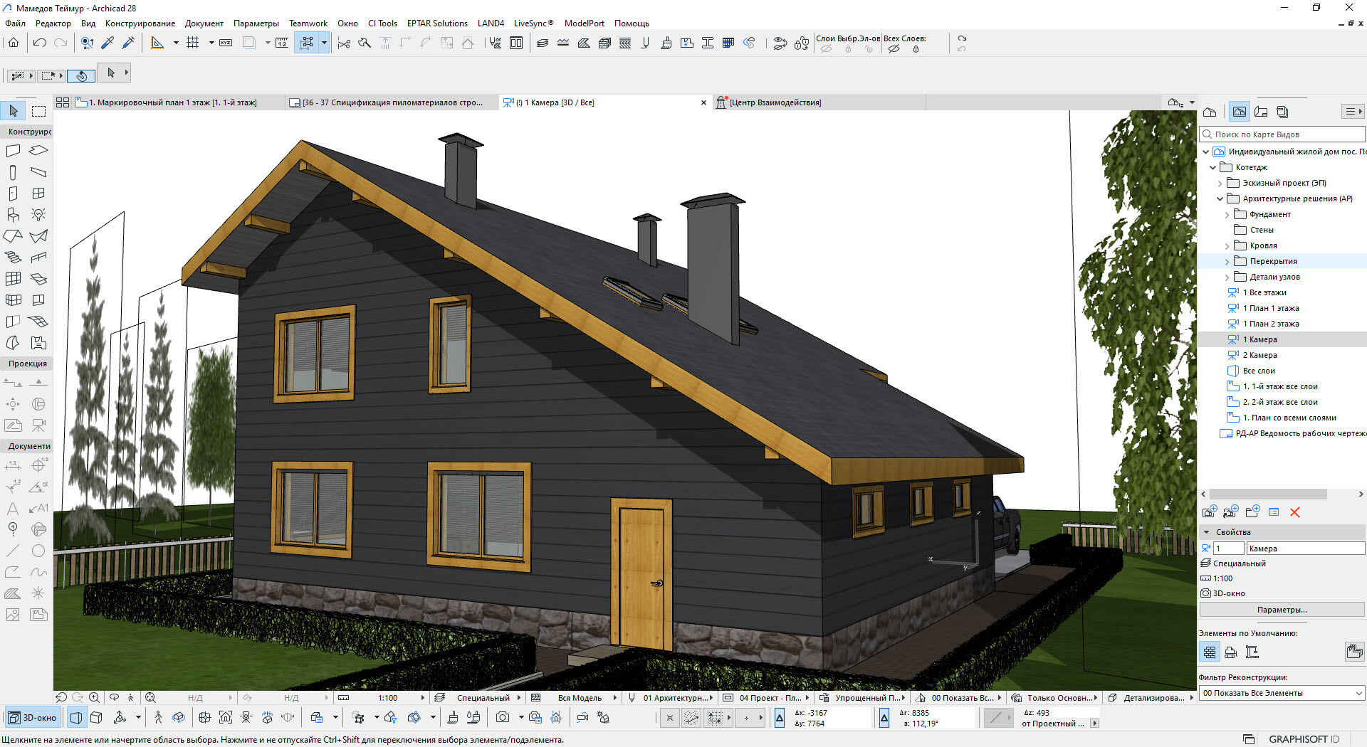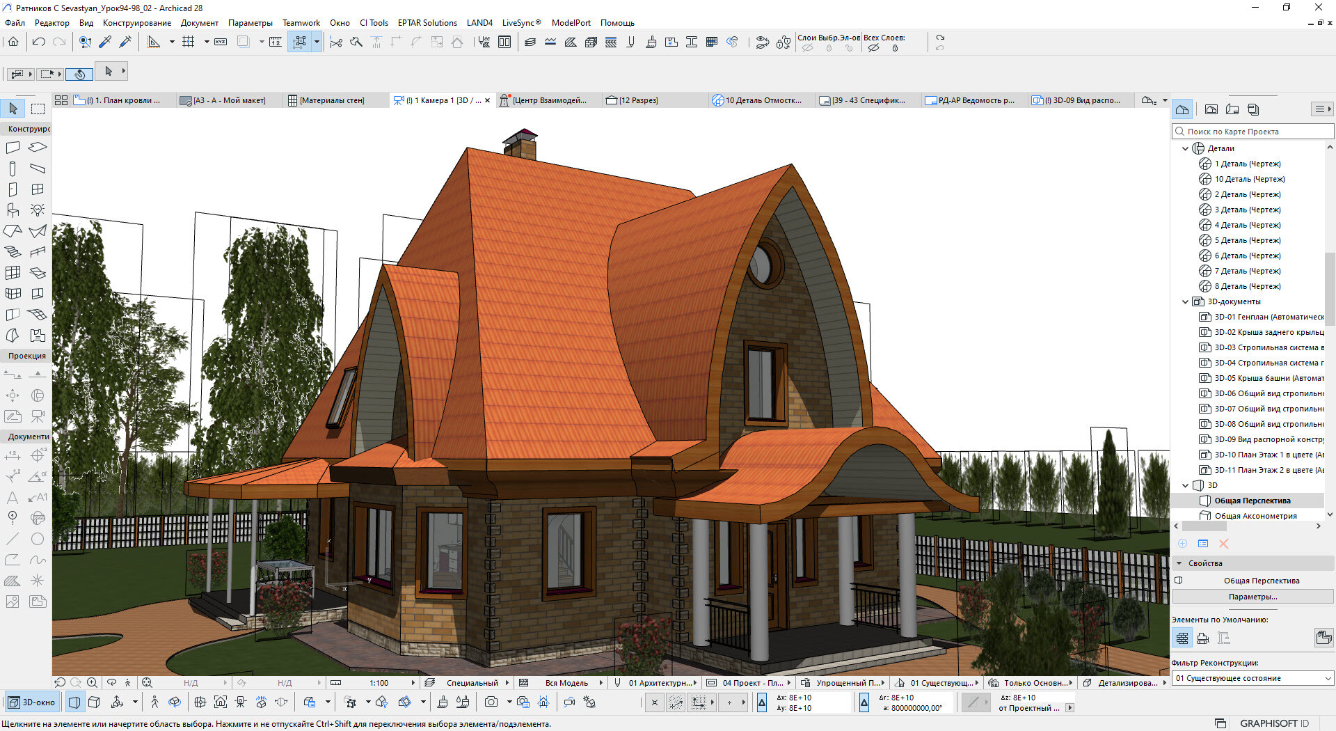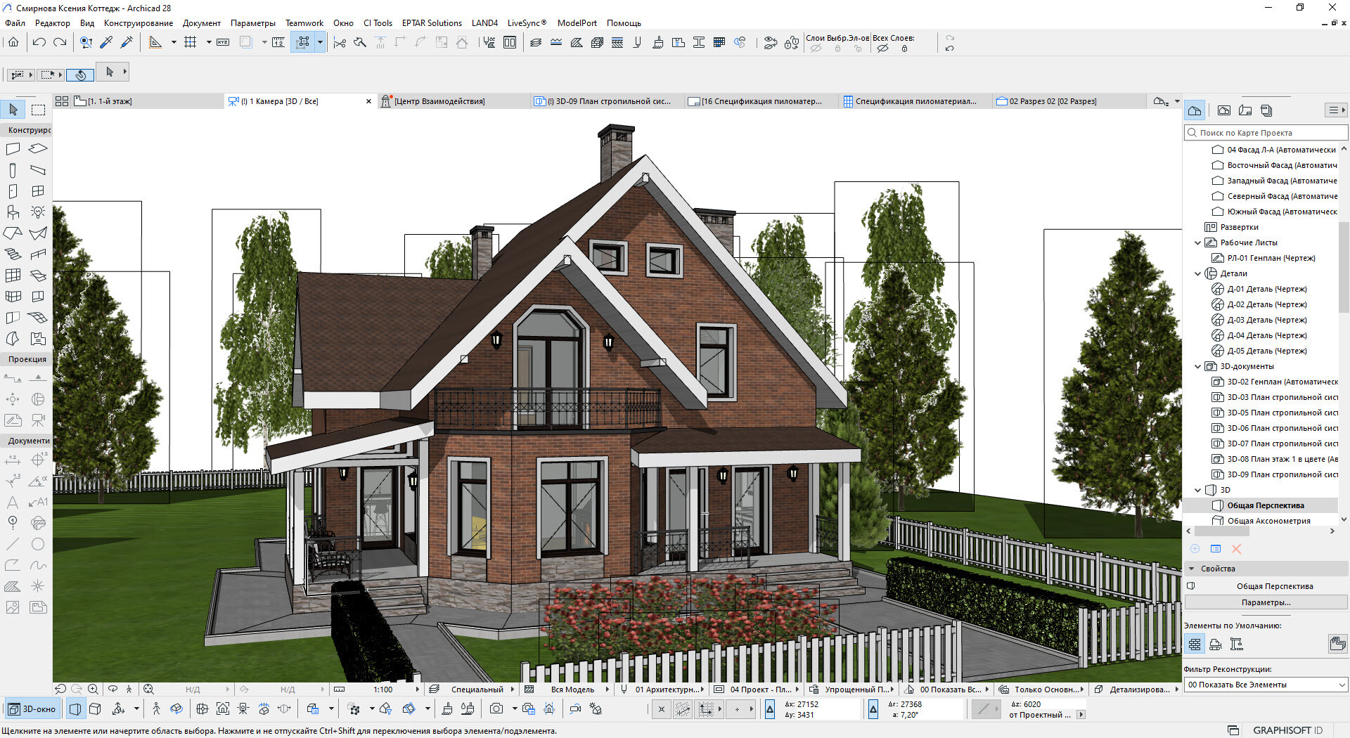 На основе смоделированного коттеджа, Вы подготовите проектную документацию. Изучите основы проведения расчётов в ArchiCAD. Создадите единый PDF файл с подготовленными чертежами и расчётами.