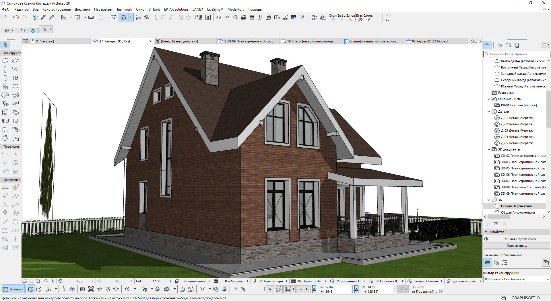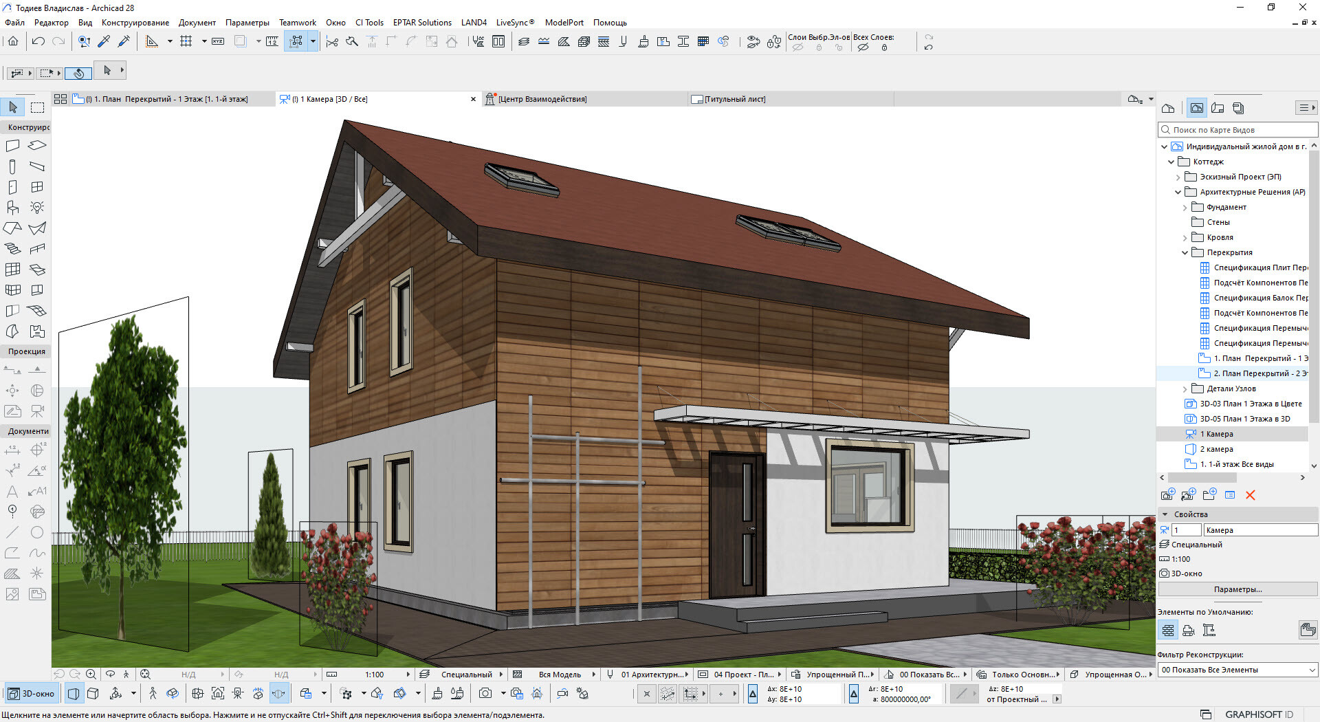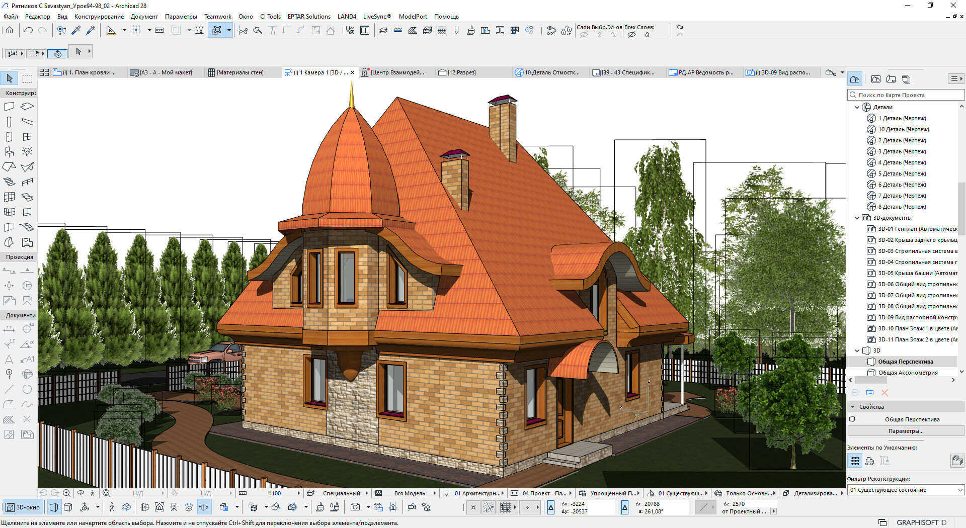 На основе смоделированного коттеджа, Вы подготовите проектную документацию. Изучите основы проведения расчётов в ArchiCAD. Создадите единый PDF файл с подготовленными чертежами и расчётами.
