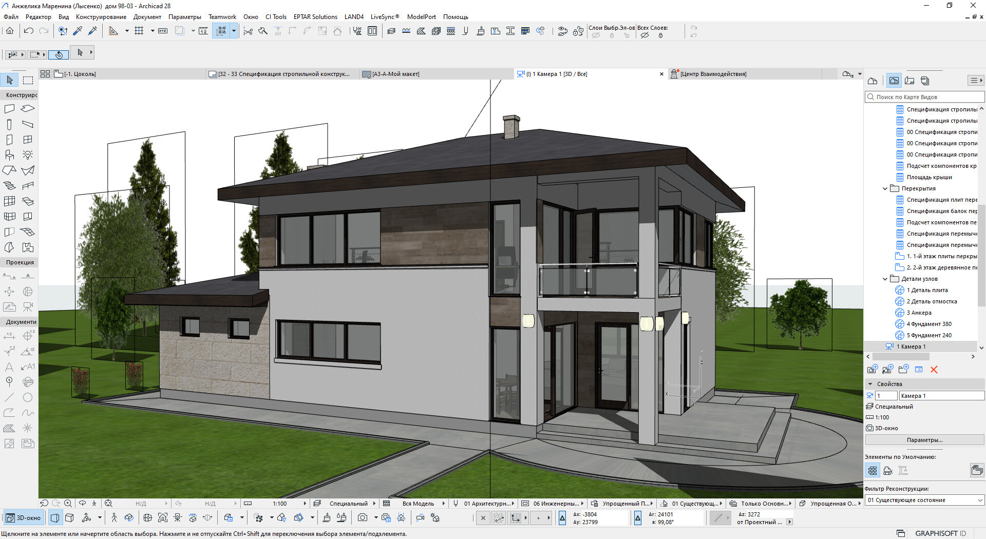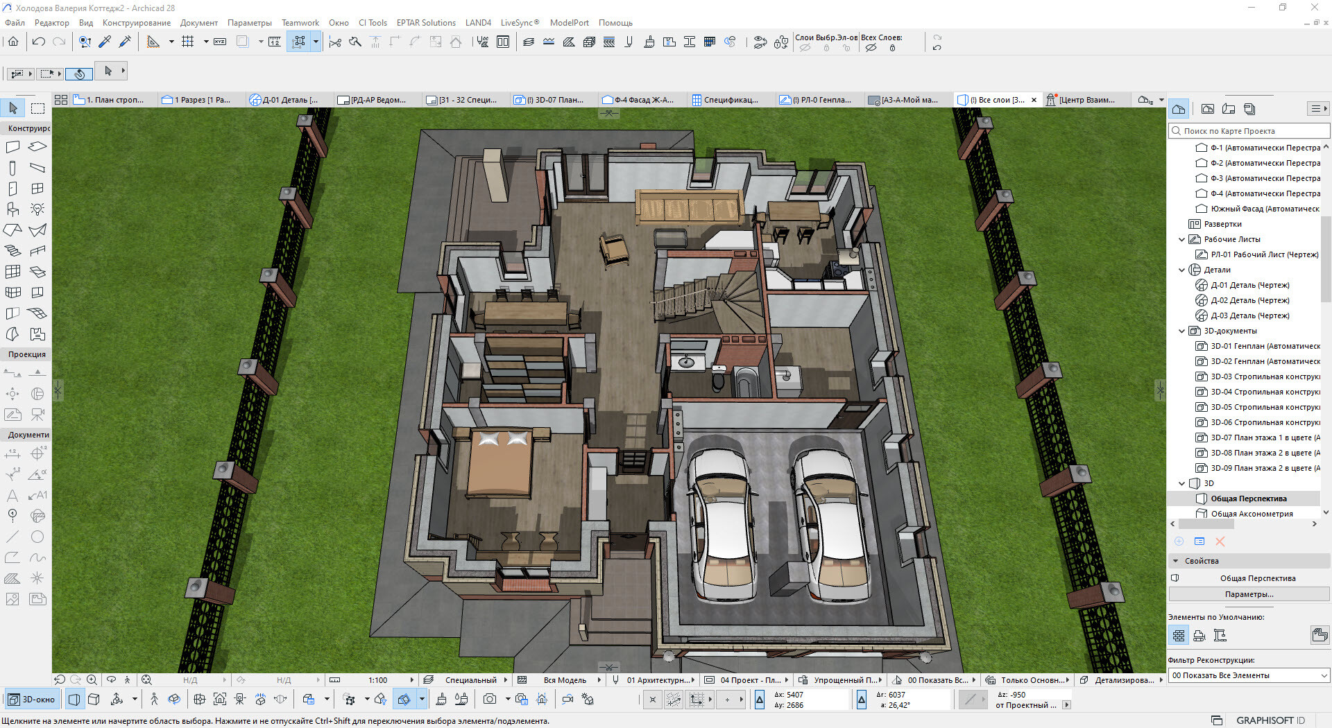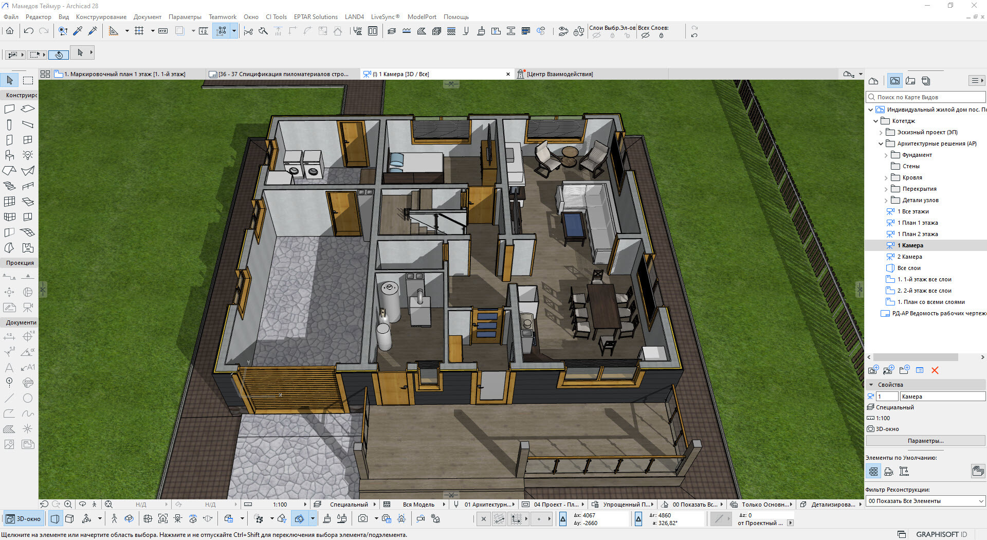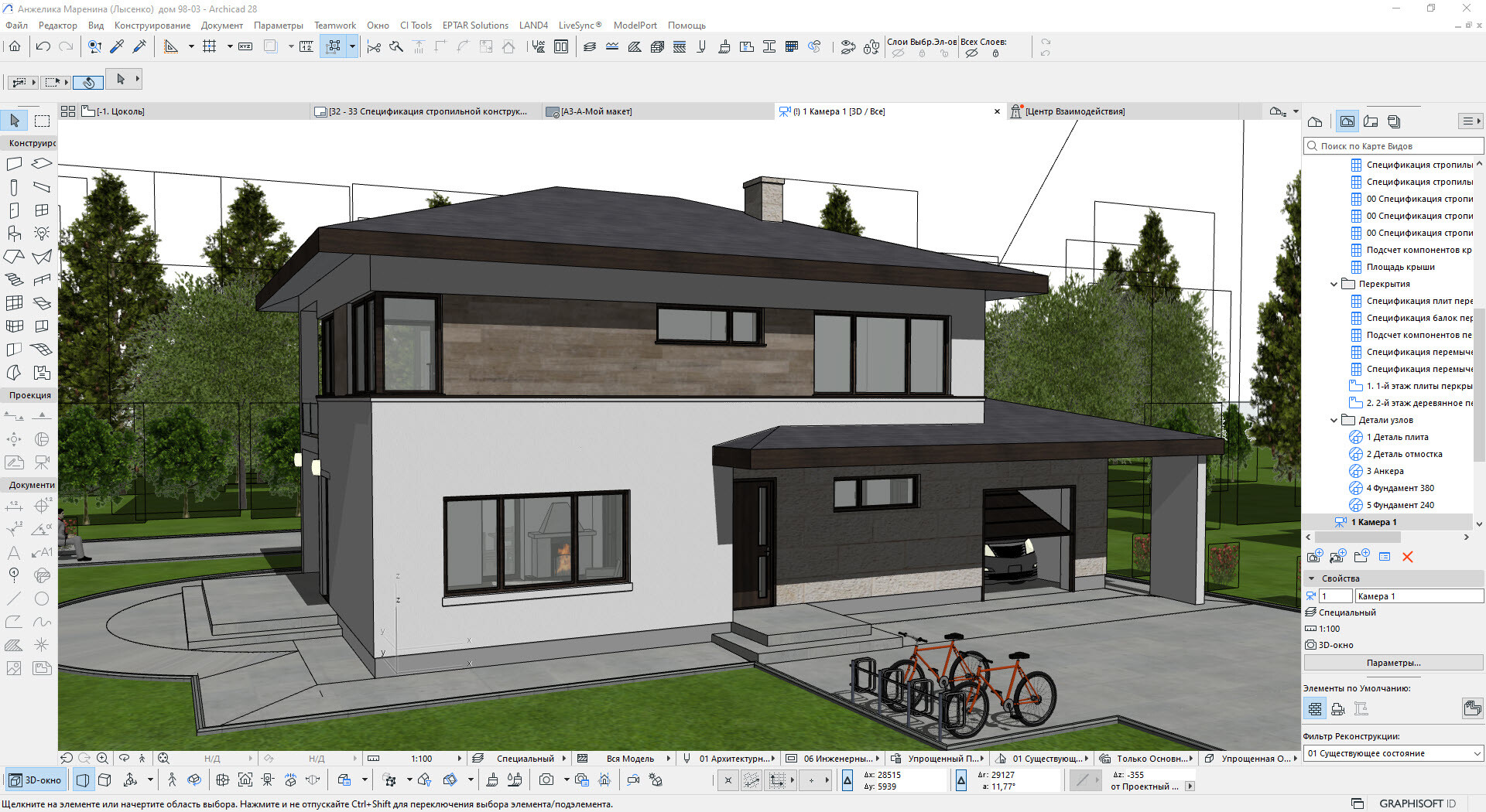 На основе смоделированного коттеджа, Вы подготовите проектную документацию. Изучите основы проведения расчётов в ArchiCAD. Создадите единый PDF файл с подготовленными чертежами и расчётами.