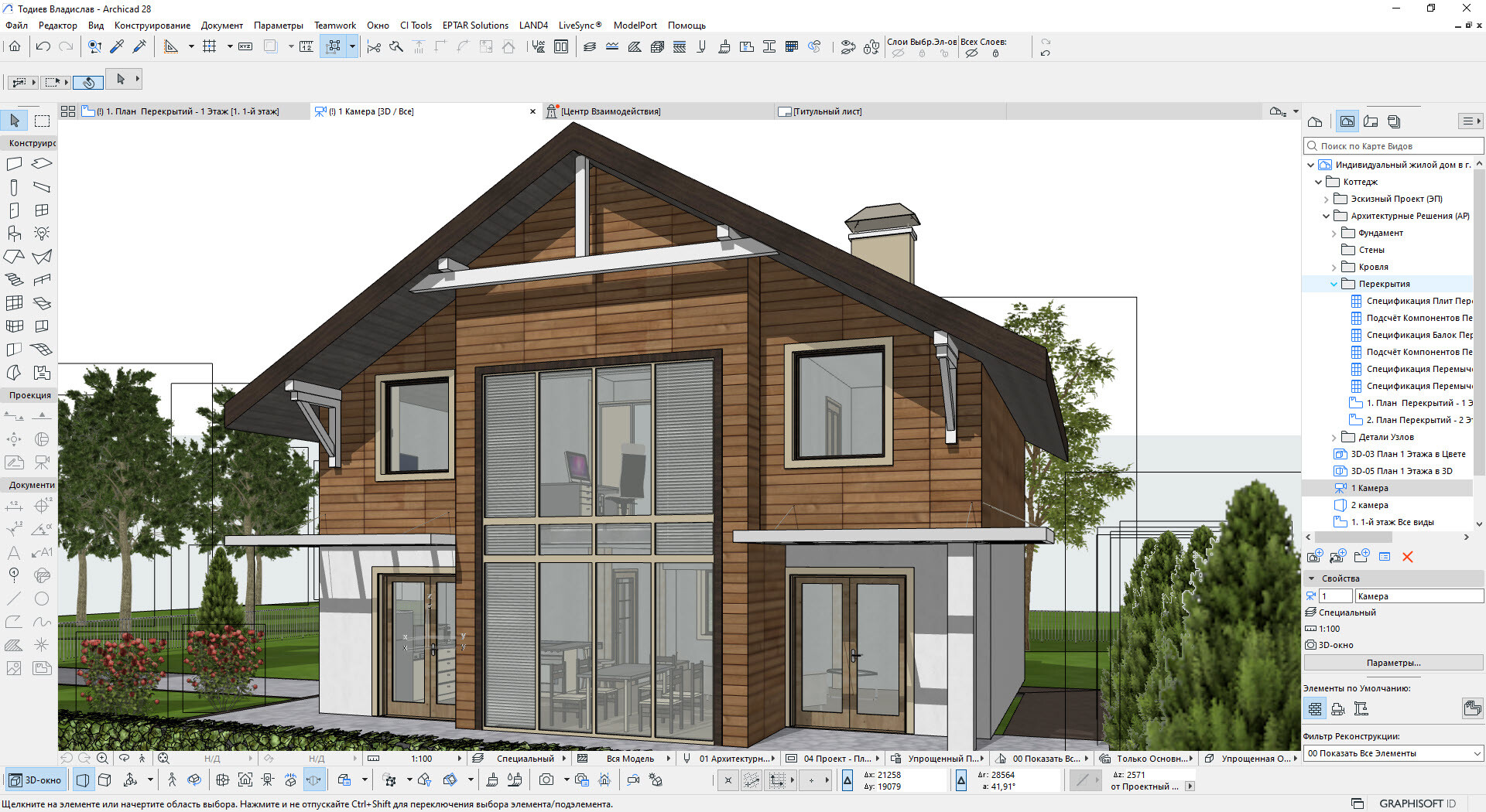 Освоите основы визуализации в ArchiCAD и создадите фотоизображения модели коттеджа. Это понадобится Вам, для более наглядного представления своего проекта заказчику.