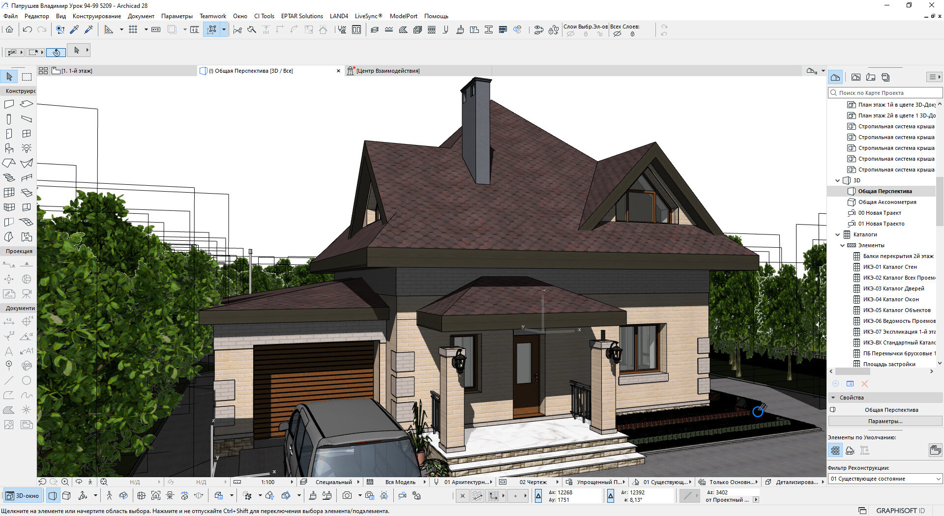 Хотела написать, как очень давно пыталась осилить самостоятельно Архикад 7 по учебнику хорошего автора Титова и что в конце концов, увы, поставила на этой затее крест… Как спустя некоторое время наткнулась на сайт А. Каширского obucheniedoma.ru и поняла, что нет ничего невозможного.